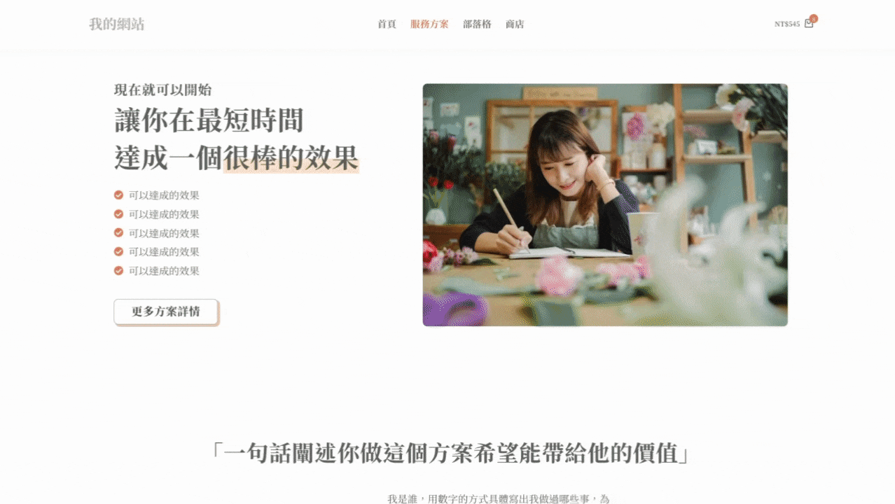 提供多樣化的專業模板,涵蓋電商、個人品牌、企業形象等類型,讓你輕鬆挑選符合品牌形象的網站設計,迅速打造專屬網站風格。